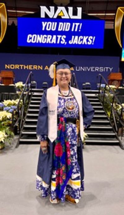 Through the scholarships received from NAU Jacks on Track, NAU Department Scholarship and the Native Women Scholars program she was able to pay her educational expenses in full; she is much appreciative of these programs for helping her complete this life goal. Melissa is a proud holder of a Bachelor's degree, in Interdisciplinary Studies 90-30, Public Administration from Northern Arizona University, proud graduate Class of 2025.